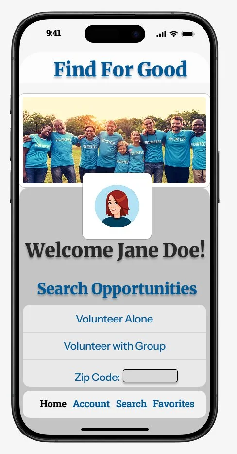 Find for Good wanted to make an app that would give more options than just looking up volunteer opportunities on their website.